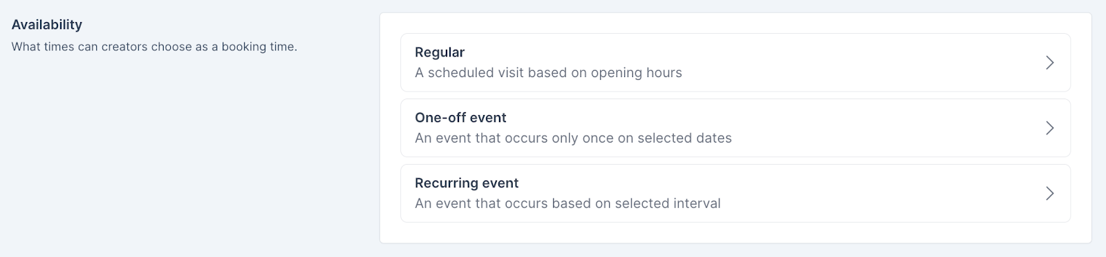 When you create a campaign on Bulba, you can choose from three event types. Each one is designed to match different kinds of experiences and make it easy to manage your bookings.